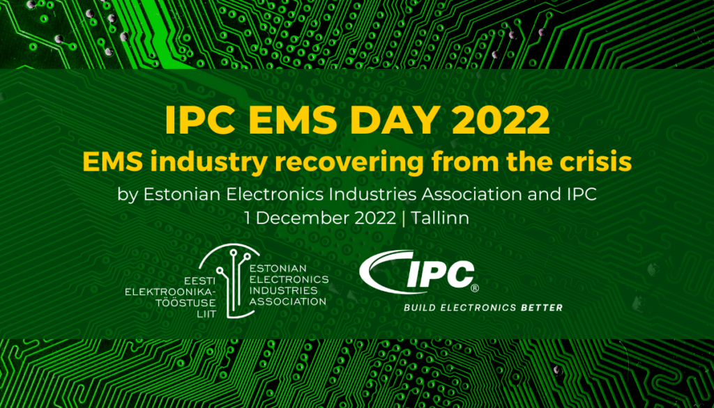 Eesti Elektroonikatööstuse Liidu ja IPC elektroonikaseminar  “IPC EMS DAY 2022: EMS industry recovering from the crisis” toimub sel aastal 1. detsembril algusega kell 10 Radisson Blu Hotel Olümpias Tallinnas.